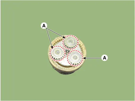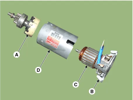 Detach the planet gear shaft assembly (A), brush holder assembly (B),