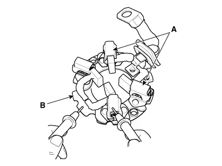 Loosen the through bolts (A) and then separate the brush holder assembly