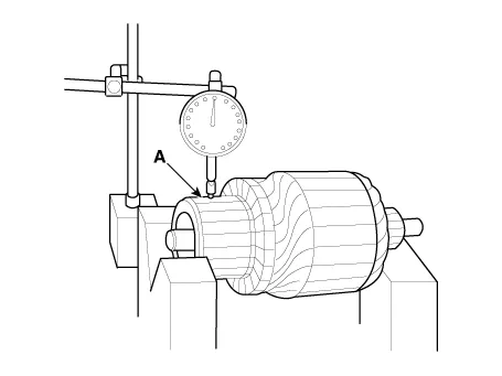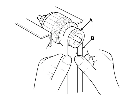 Check the commutator (A) surface. If the surface is dirty or burnt,