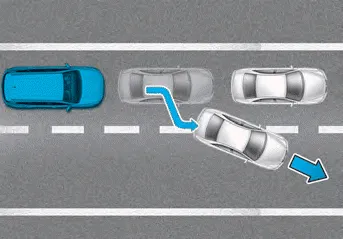 When a vehicle moves into your lane from an adjacent lane, it cannot be detected by the sensor until it is in the sensor's detection range. Smart Cruise Control may not immediately detect the vehicle when the vehicle changes lanes abruptly. In this case, you must maintain a safe braking distance, and if necessary, depress the brake pedal to reduce your driving speed in order to maintain a safe distance.