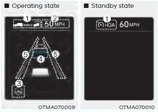 You can see the status of the Highway Driving Assist operation in the Driving Assist mode on the cluster. Refer to “LCD Display Modes” section in chapter 4. Highway Driving Assist will be displayed as below depending on the status of the system.