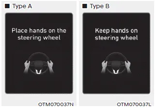 If the driver takes their hands off the steering wheel for several seconds, the ‘Place hands on the steering wheel’ (or ‘Keep hands on the steering wheel’) warning message will appear and an audible warning will sound in stages.