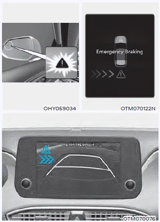 the 'Emergency Braking' warning message will appear on the cluster. At the same