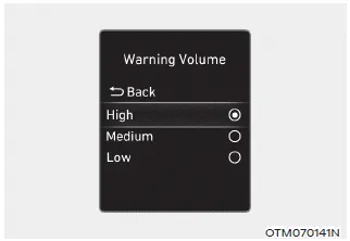 If you change the Warning Volume, the Warning Volume of other Driver Assistance systems may change.