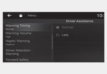 When the vehicle is first delivered, Warning Timing is set to ‘Normal’. If 'Normal' feels sensitive, change the settings to Late.