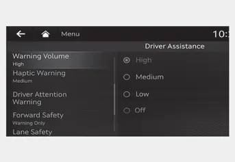 If you change the Warning Volume, the Warning Volume of other Driver Assistance systems may change.