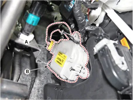 Loosen the mounting screw and remove the passenger shower duct (A).