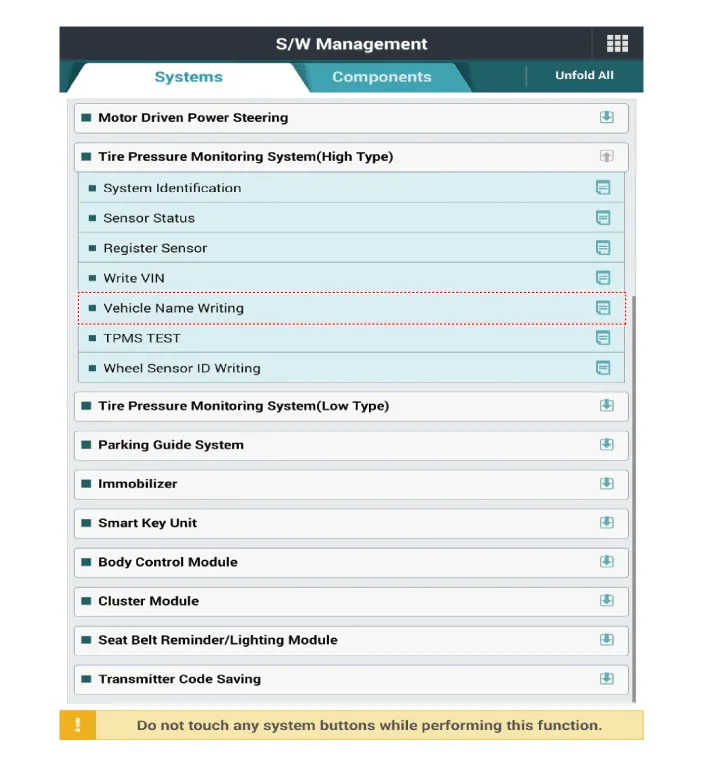 Select the "vehicle model" and "TPMS" on GDS vehicle selection screen,