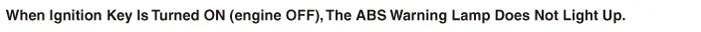 If the ABS/Brake Warning Light does not illuminate: The failure