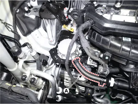 Remove the retaining clip then remove the vacuum pump hose (A).