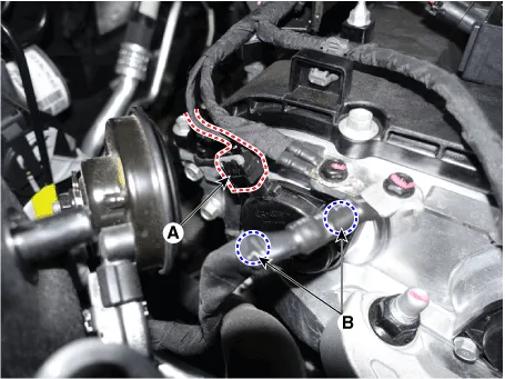 Turn the ignition switch OFF and disconnect the battery negative (-)