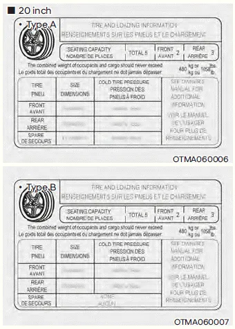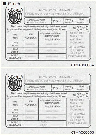 The label located on the driver’s door sill gives the original tire size, cold tire pressures recommended for your vehicle, the number of people that can be in your vehicle and vehicle capacity weight.