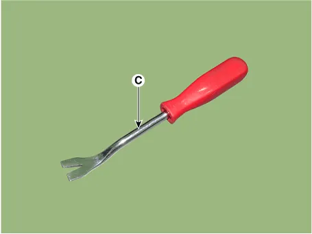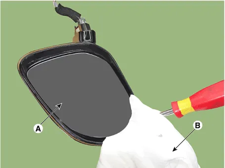 Using a fastener remover (C), remove the mirror (A) as illustration