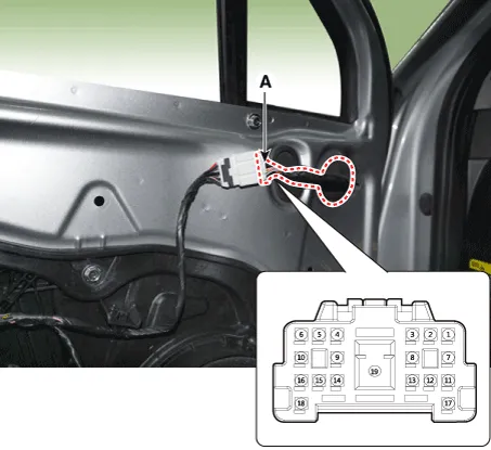 Disconnect heat wire and BCW connectors (A) and then remove the mirror.