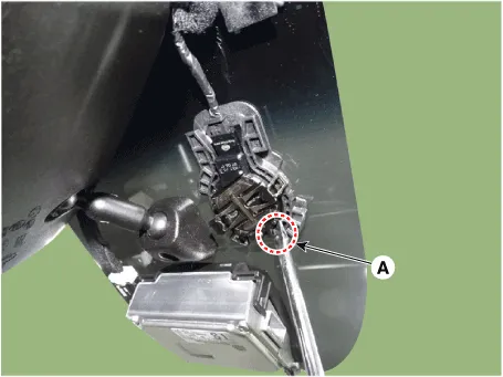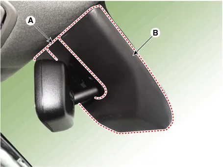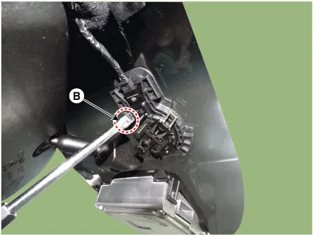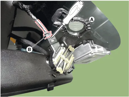 Disconnect the wiring harness connector (B) from the rain sensor by