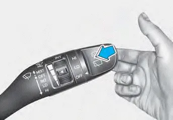 Push the lever away from you to spray rear washer fluid and to run the rear wipers 1~3 cycles. The spray and wiper operation will continue until you release the lever.