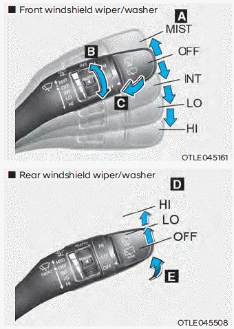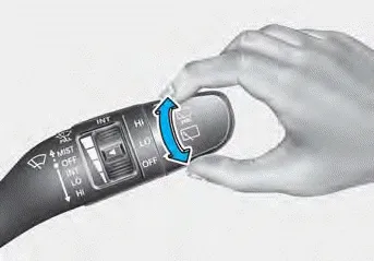 MIST : For a single wiping cycle, move the lever upward and release it. The wipers will operate continuously if the lever is held in this position.